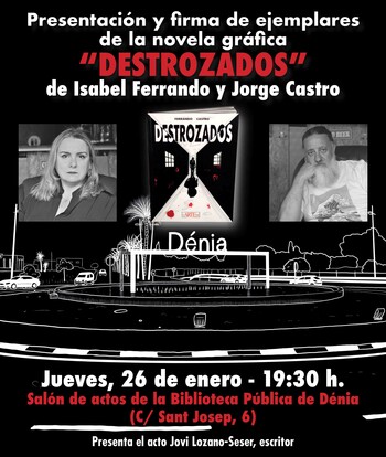 #Destrozados editado por Cartem Cómics es una ficción basada en un hecho real. En el verano del 2015, Dénia se vio sacudida por un crimen sin precedentes. Gracias a una investigación policial impecable y apasionante, en menos de dos semanas y con apenas un par de datos, la policía logró dar con el asesino. ¿Cómo sucedió? ¿Cuáles fueron las pistas? ¿Qué llevó al autor material de los hechos a actuar de esta manera? ¿Tuvo ayuda?